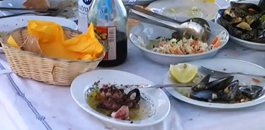 Anyway, we got out of there under some cloud cover and a light rain which gave us some much needed relief from the sun. We started into the mountains finally after about 60k and stopped Sunday at a village where we had a couple of beers and a great lunch of grilled pork with pilaf and fries. I'll interject a small point here that the only beers in Greece seem to be Heineken or Amstel. On rare occasions you'll see a Kaiser or something, but there aren't any Greek beers available anywhere…it must be a fairly recent thing and I guess the Greeks just don't drink much beer.